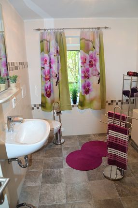 - das Bad mit bodengleicher Dusche und Fön
