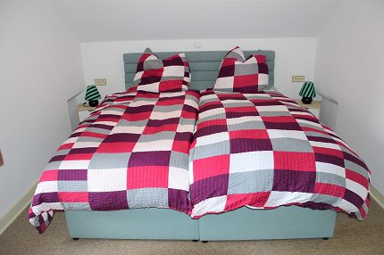 - 2 Schlafzimmer im Obergeschoß mit Doppelbett und Boxspringbett (beides neu)
