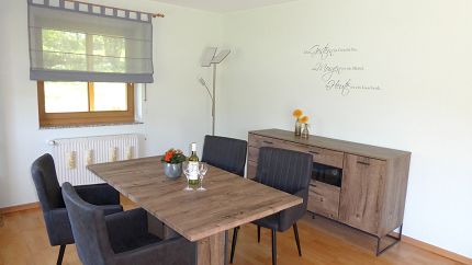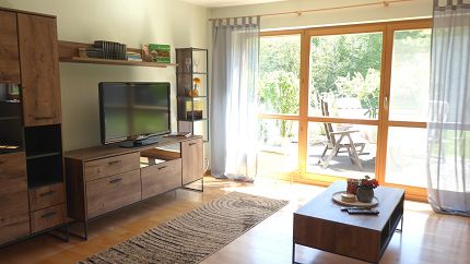- Wohn/Esszimmer mit Ausziehcouch (1,40 m breite) als Schlafplatz für 2 Personen.