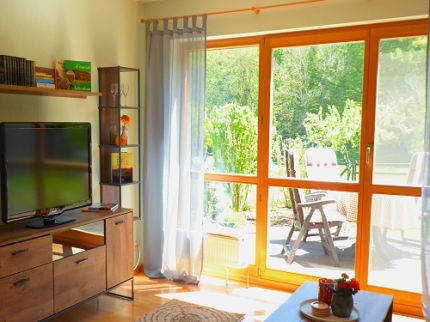 Die 60 m² große, helle und freundliche, Ferienwohnung liegt ebenerdig im Einfamilienhaus der Familie und hat einen separaten Eingang. 2-4 Gäste finden in der, 2020 neu renovierten und eingerichteten, Wohnung Platz.